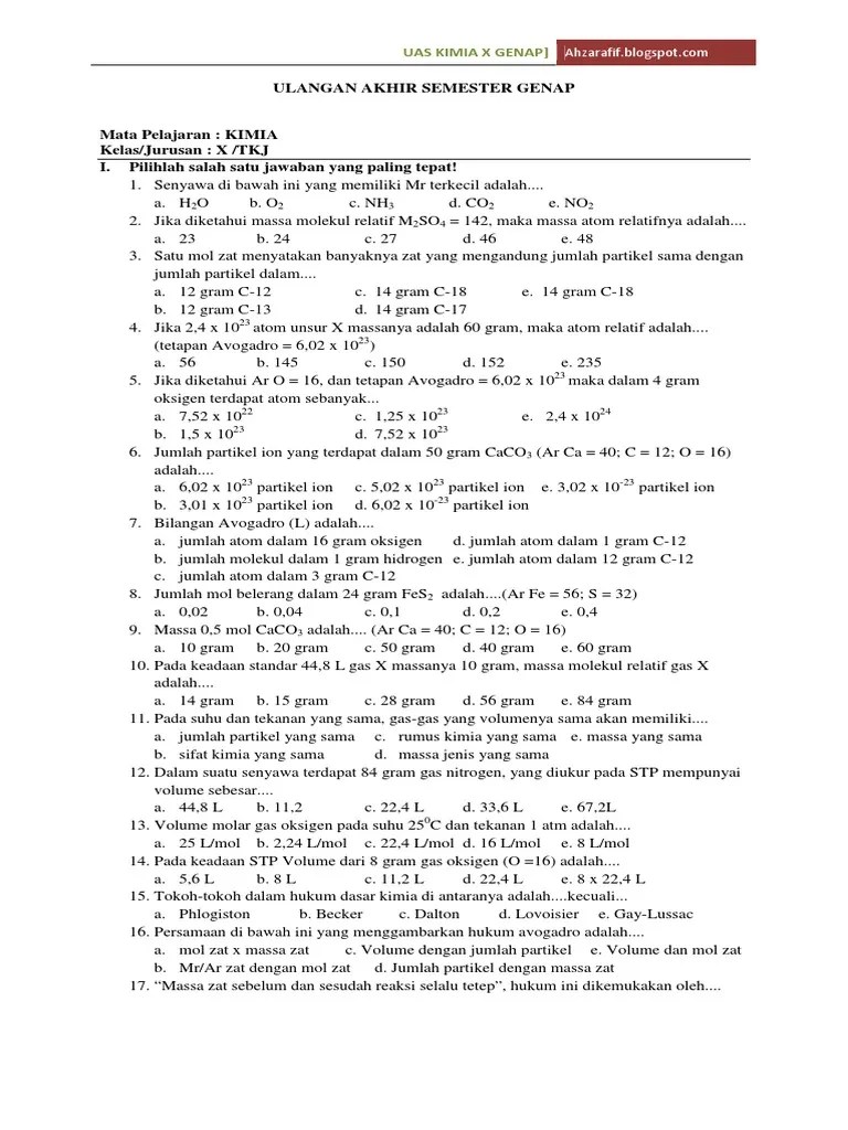 Soal Uas Kimia X.doc / Download Soal Pat Kimia Kelas X Tahun 2018 K13 Pdf Doc : Pernyataan teori atom dalton yang tidak relevan lagi setelah berhasil dikembangkan .
